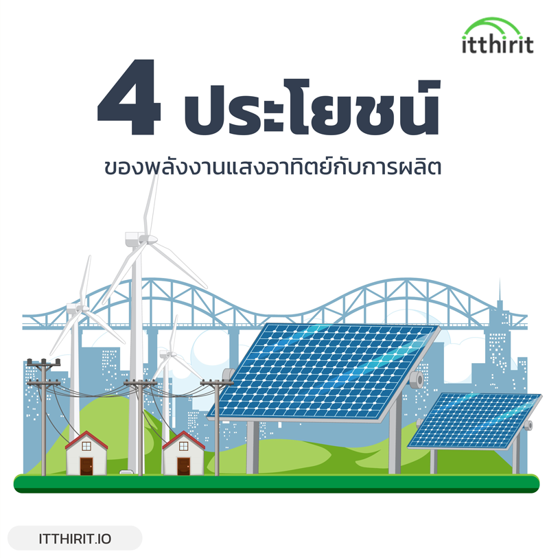 ลดค่าใช้จ่ายด้านพลังงาน พลังงานแสงอาทิตย์เป็นพลังงานสะอาดและไม่มีวันหมด จึงช่วยลดค่าใช้จ่ายด้านพลังงานให้กับโรงงานได้อย่างมาก