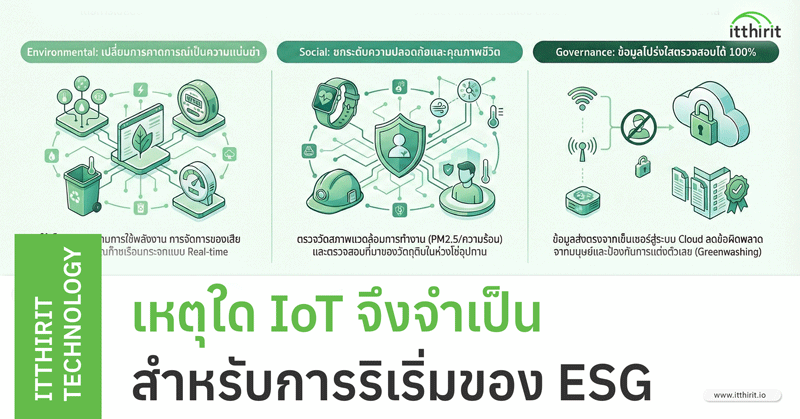ในยุคที่ความยั่งยืนไม่ได้เป็นแค่ทางเลือก แต่เป็น ทางรอด ของธุรกิจ การทำ ESG จึงต้องชัดเจน ตรวจสอบได้ และจับต้องได้จริง คือการนำเทคโนโลยี IoT