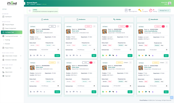Problems can be reported through the system. The system will analyze and assign work to the responsible engineer. Supervisors can track the progress of maintenance work in real time through a dashboard that displays complete information such as job status and time spent on repairs
