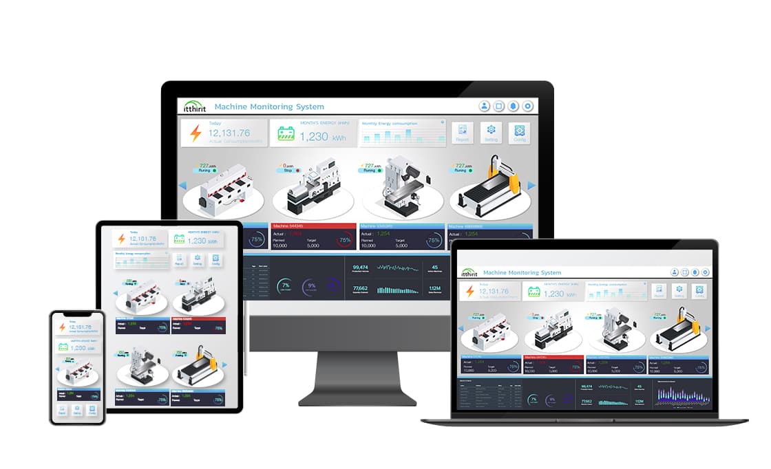 Displaying machine data and conducting real-time analysis using an IoT system Itthirit Technology Co., Ltd. is a specialist in Automation Industry, Smart Building, Smart City, Smart Farmer, and Smart Factory systems. They leverage data integration into the Internet, allowing remote control of various devices through the internet network. This includes tasks like device activation and deactivation, as well as data monitoring from electronic devices.
